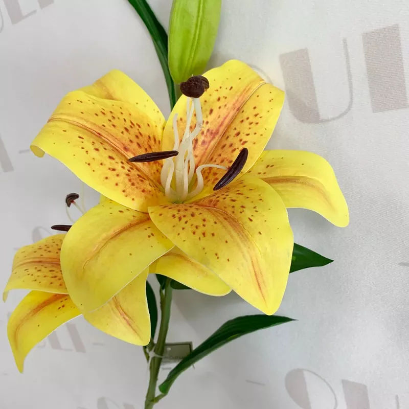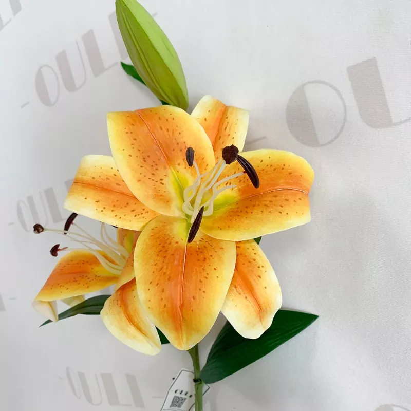 Mar bhranda a dhíríonn ar onnmhairiú bláthanna saorga, tá Ouli® tiomanta do ealaín bláth maisiúil a sholáthar do chustaiméirí domhanda a chomhcheanglaíonn áilleacht agus cáilíocht. Baineann an lile falsa seo úsáid as meascán de PU bog agus éadach síoda ard-insamhalta, le brainsí díreacha agus bláthanna iomlána agus nádúrtha. Is é fad brainse amháin ná 90cm, ina bhfuil 2 bhláth lán -bhláth agus 1 bud, atá ina mhír idéalach le haghaidh maisiú baile nua -aimseartha agus cúlra bainise. Tá deimhnithe idirnáisiúnta rite ag an Lily falsa PU seo mar CE/UKCA/ROHS agus tá sé oiriúnach do mhaisiúchán fadtéarmach faoi dhíon.